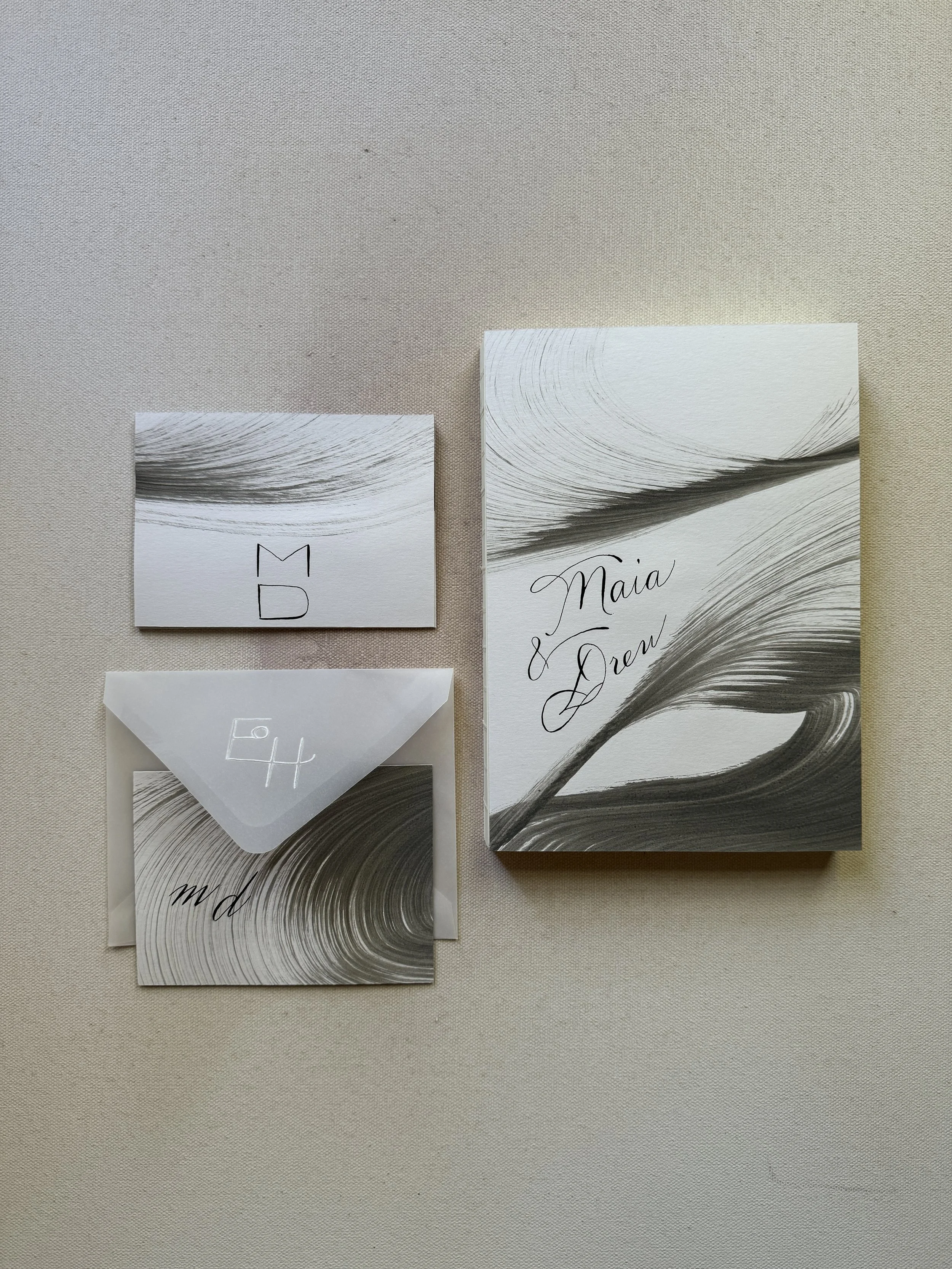 Maia and Drew - hand-painted journal with custom cover, 5 custom hand-painted cards, and bookmark ($115)